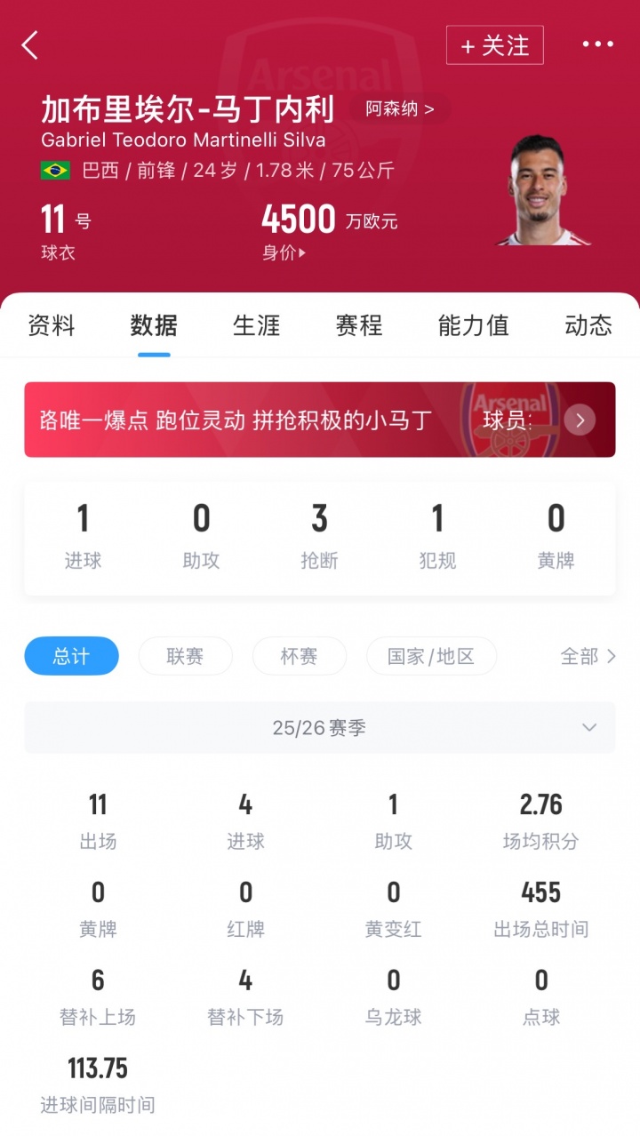 值得一提的是,今夏有多家媒体报道,阿森纳有意出售马丁内利,据邮报消息,球队此前对马丁内利估值为6000万欧元,但拜仁等队估价仅为3500万左右,因此球员最终留队。尽管马丁内利本赛季多数比赛是替补上场,但他也用出色表现再次证明了自己。